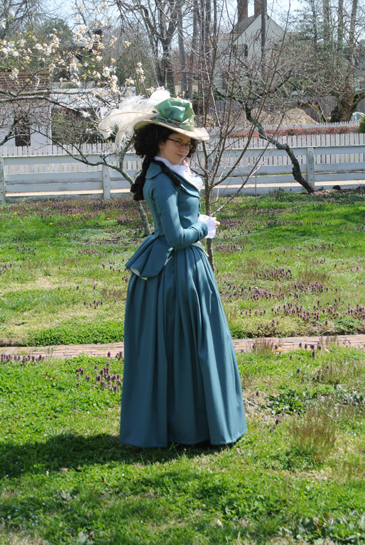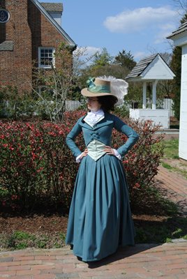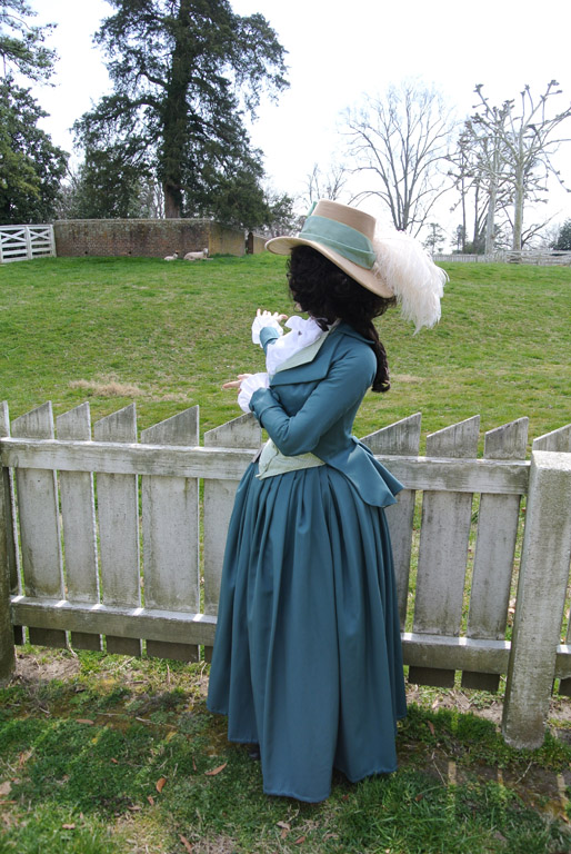 With less than a week until I leave for Williamsburg, I'm happy to say the bulk of my sewing is finished! The habit shirt and jacket are both wearable (though lacking buttonholes), and while the jacket is far from perfect, I'm not disappointed with my first attempts at tailoring. As you can tell, my final designed morphed from early to mid 1780s to very definitely late 1780s early 1790s. When I'm pressed for time, I dont fight the fabric, I just let it do the talking. I plan some more detailed construction posts later, but for now I have a few photos to share.