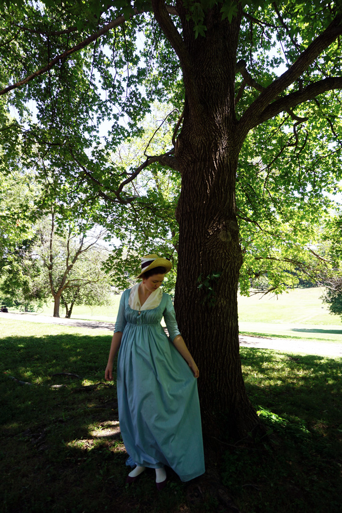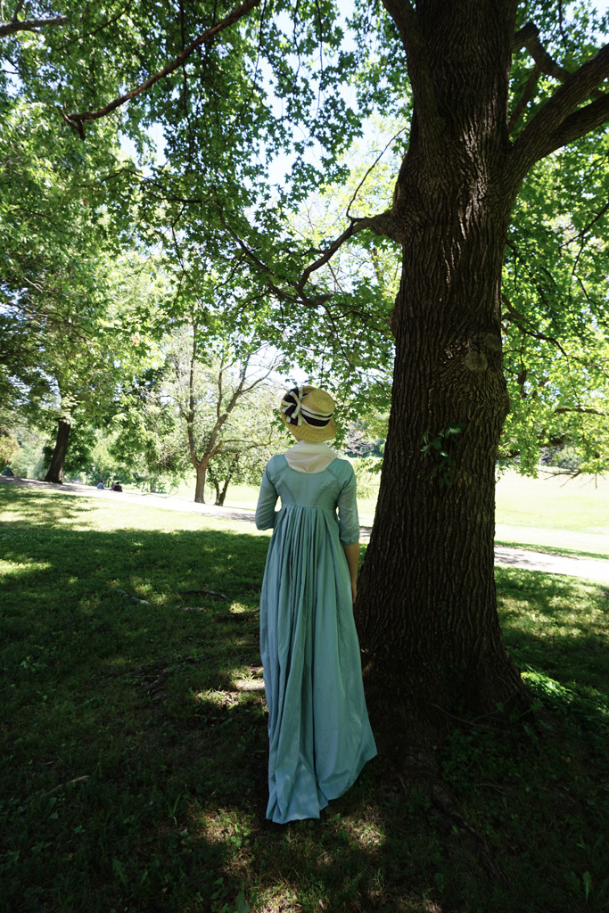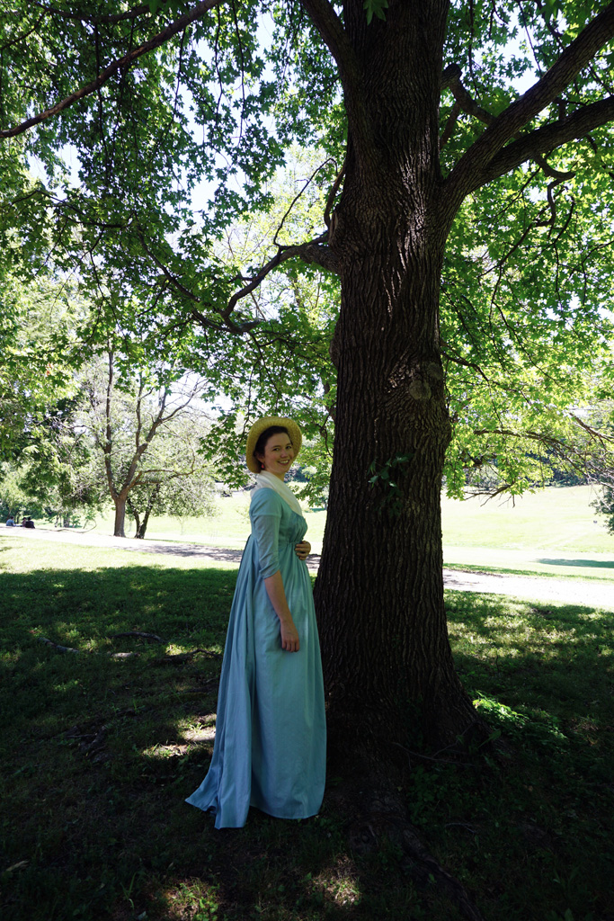 My obsession with the 1790s and transitional drawstring dresses continues! It’s my go-to style when I need something comfortable, quick to make, and easy to wear, so of course it’s what I made this summer for the Louisville Jane Austen Festival. I shared photos of the finished dress in my early post on the 2017 Jane Austen Festival, but I wanted to talk more about the actual construction process.