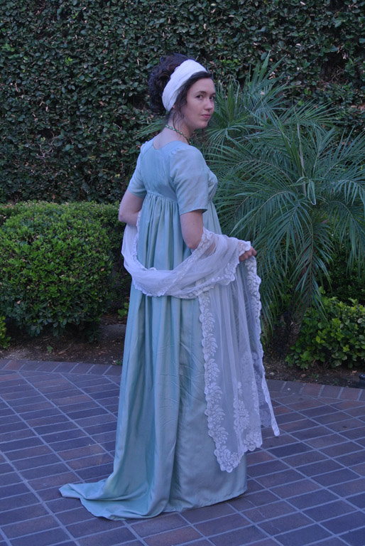 One of the things I love, and admittedly hate too, about costuming is the fact that every project is different. I may have made things from the era before, but each project presents its own unique challenges, frustrations, and opportunities to learn. One of my current project is the perfect example. I’m working on a mid-1790s evening gown with a gathered front and high, narrow back. My love for 1780s and 1790s gathered front transitional gowns is pretty obvious when you look at my project history, but despite the fact that I’ve made five similar gowns, this project has been an interesting experiment.