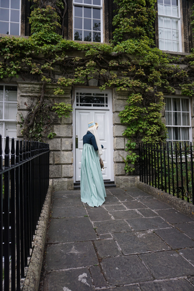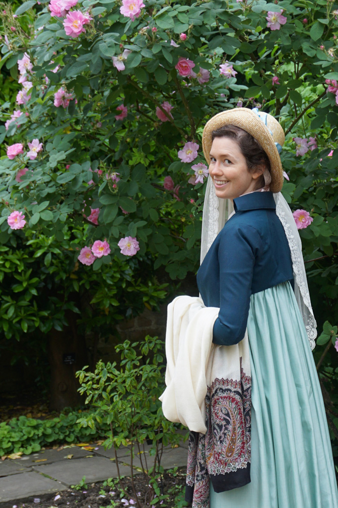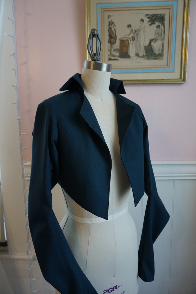When I was planning what to make for my trip to Bath, an all-weather spencer topped the list. The only spencer I had was my blue spotted silk, which as lovely as it is, isn’t good to wear in the heat or in the rain. Yes, I realize my trip was in June, but I run cold and England’s idea of summer is not mine. I froze on both my previous trips and was determined not to do so again!