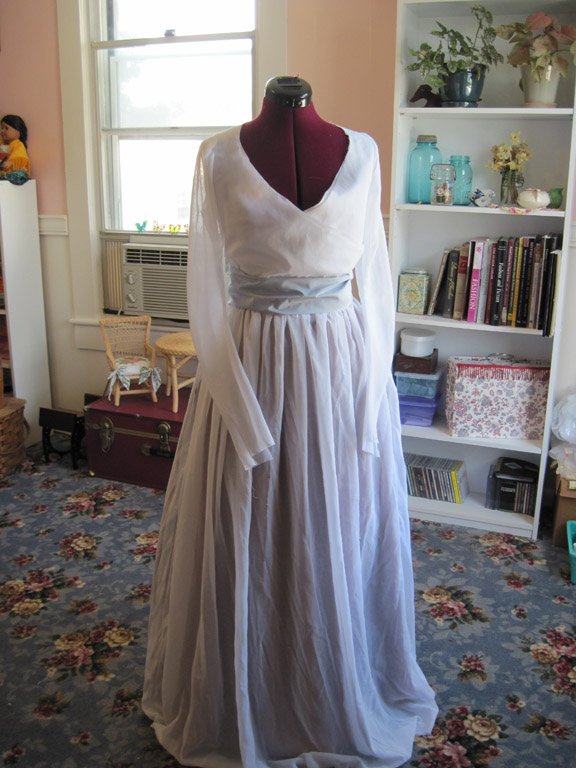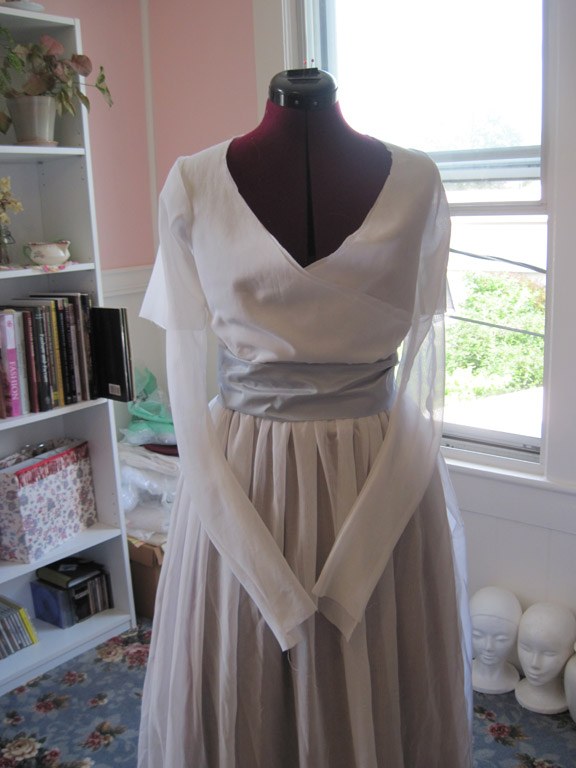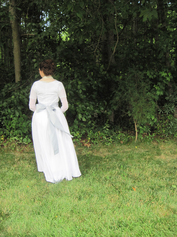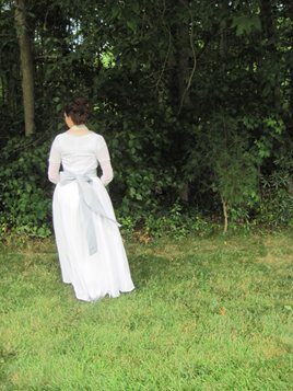 A sheer wrap-front dress based on a 1795 painting by John Hoppner.