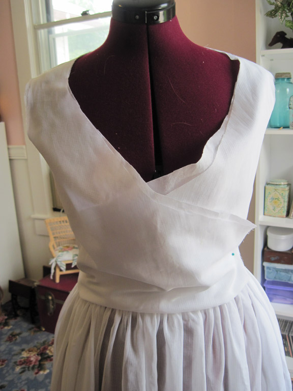 Later, I saw a wrap-front chemise dress at the Dewitt Wallace Gallery in Colonial Williamsburg, giving me more evidence to support my decision.