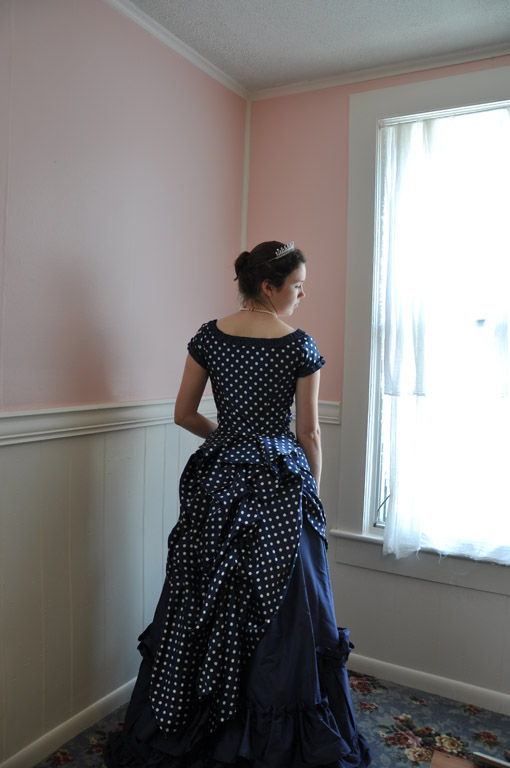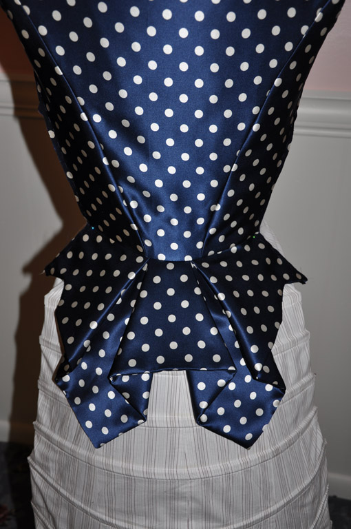 A circa 1873 evening bodice made to work with the skirts from my Spotty Dress.