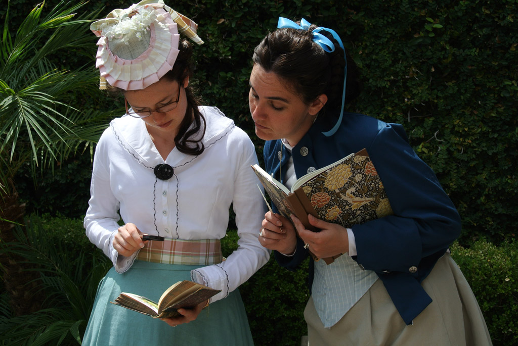 After Sara and I taught our class on Friday at Costume College, we changed into our Victorian naturalist or explorer outfits to have quick photo shoot in the wilderness behind the Woodland Hills Marriot.