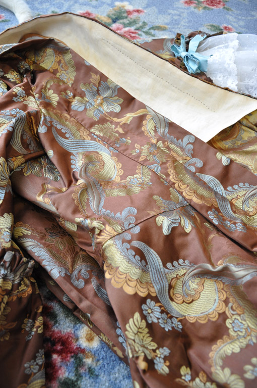 Before I move on to my next sewing project, I wanted to share a few detail shots and construction notes from my new brocade francaise. As I mentioned earlier, the construction follows the same method I outlined in my