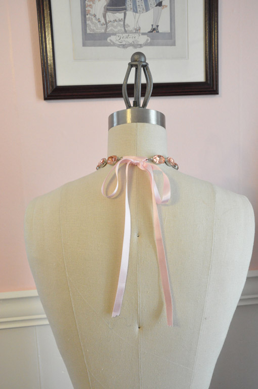 I'd almost given up hope, relegating my want to the "someday when I'm yacht-rich" place in my mind, when I saw Anna Wintour style rhinestone necklaces for sale on Esty. With just a few tweaks, it would be perfect for 18th century! So I contacted the seller to see if they would be interested in making me a custom necklace.