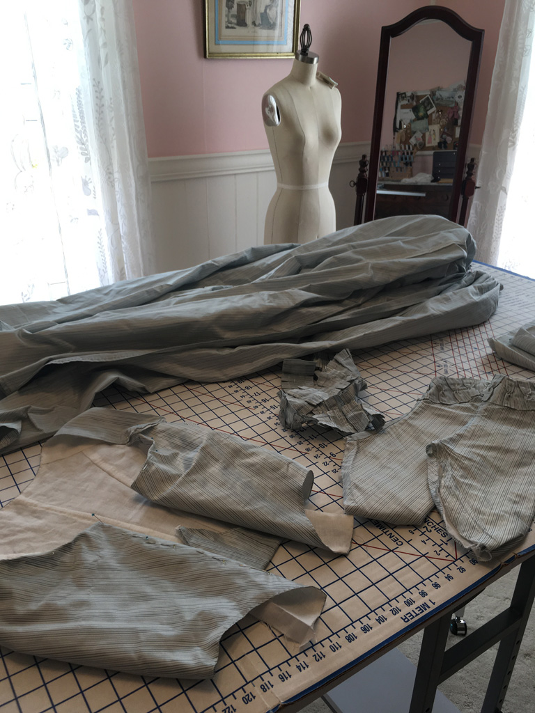 th century gown to reflect the new fashionable 1790s silhouette, copying specific alterations I’ve seen on extant gowns. In this case, I took