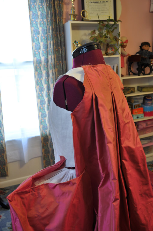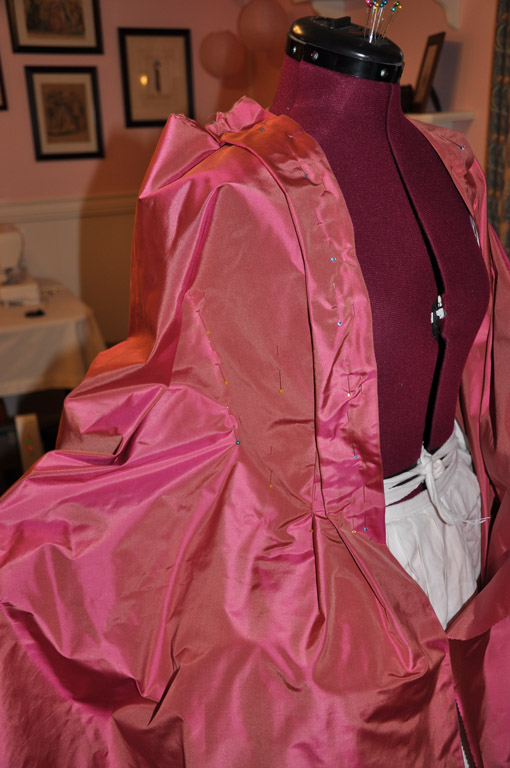 Continuing with the rose francaise construction notes, here is how I draped the front and attached the skirts.
