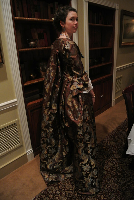 My new brocade francaise had it first outing, and on the whole I’m happy with how it turned out. It could use a few tweaks, but for now it’s good. I accessorized with a new blue paste parure from