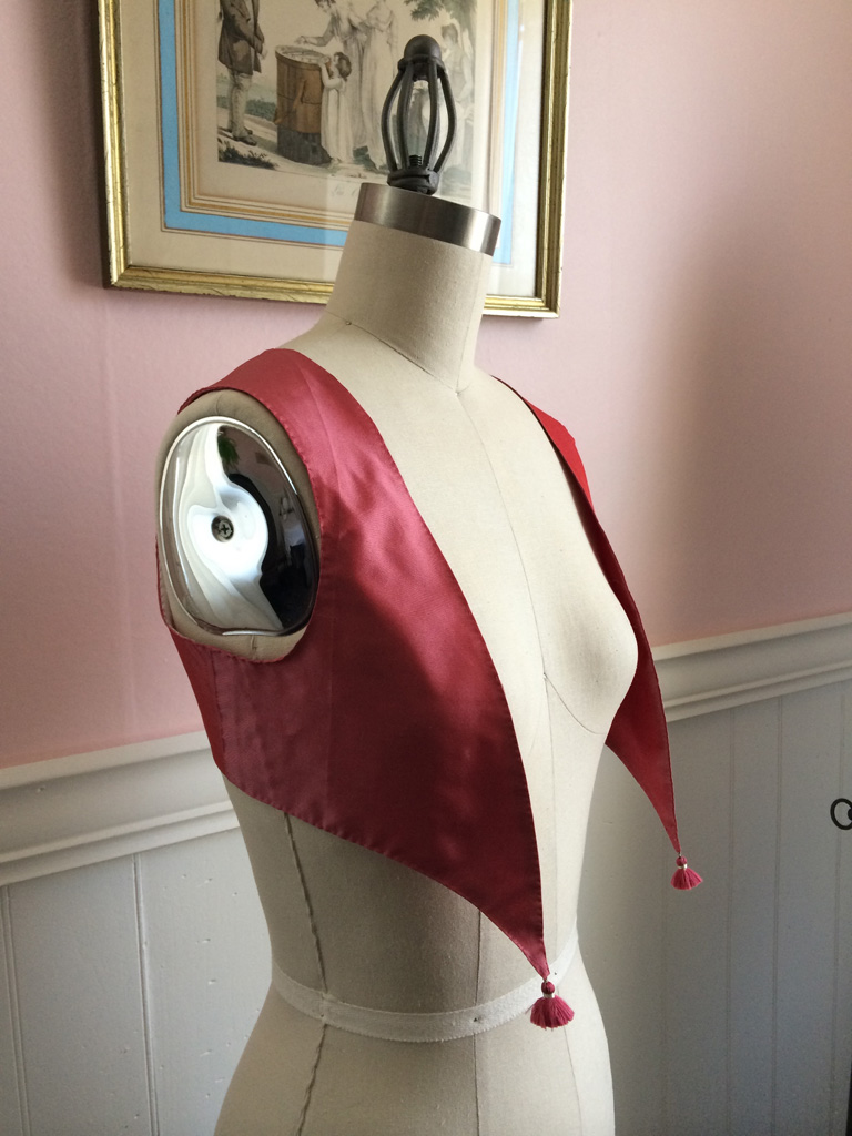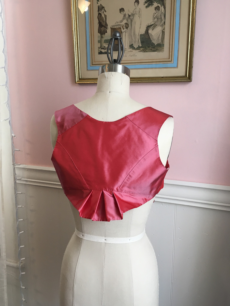 I wore the spencer at the ball in Bath, but I didn’t like how the back waistline of the spencer didn’t match the back waistline of my dress. So when I got home, I added a little pleated tail to the back to mask this. I loved the spencer before, but now I think the tails make it even cuter!