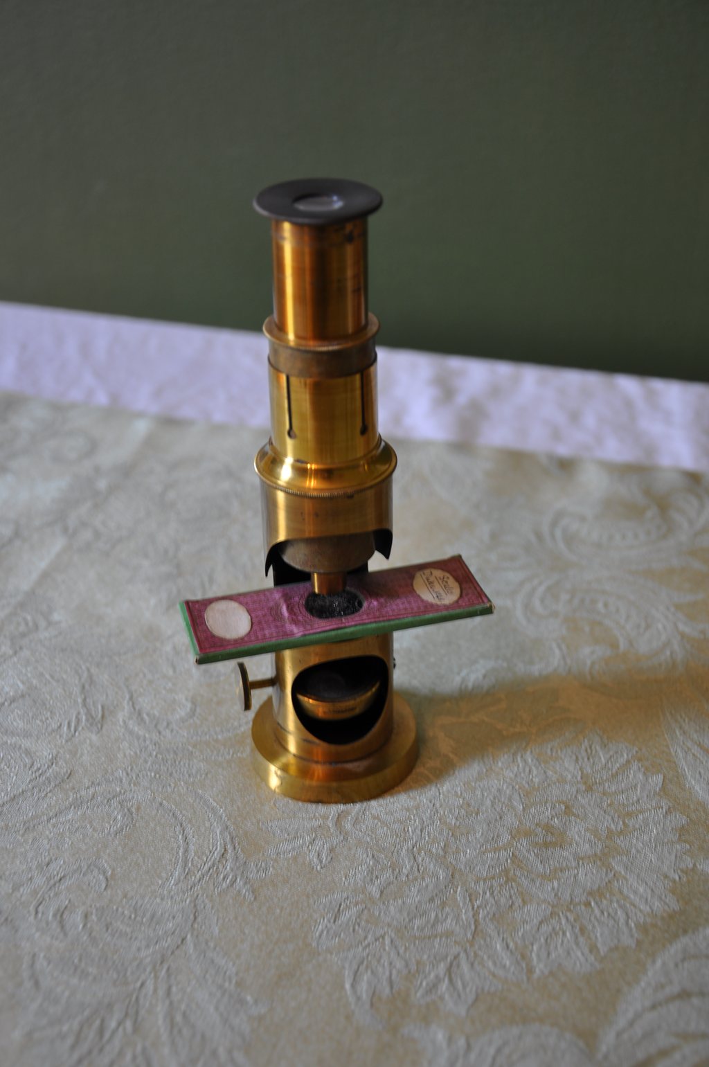 Continuing the series, the next accessory I picked up for my Victorian naturalist outfit is a really cool antique field microscope and set of antique microscope slides.