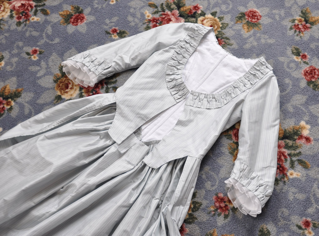 So I’m accepting my imperfections – the wrinkles on my new dress bodice, the T-Rex arms on my riding habit, wearing my old wig, and no new cap. I could spend the next week frantically trying to fix everything and